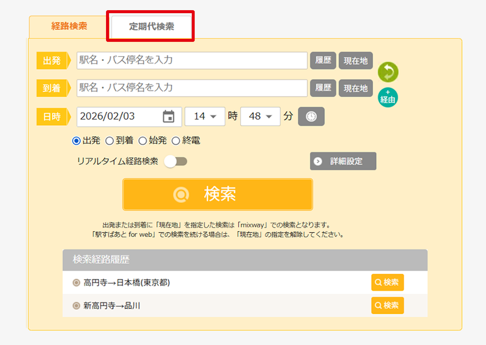 この度、多くのお客様よりご要望をいただいておりました「定期代検索」機能をリリースしました。